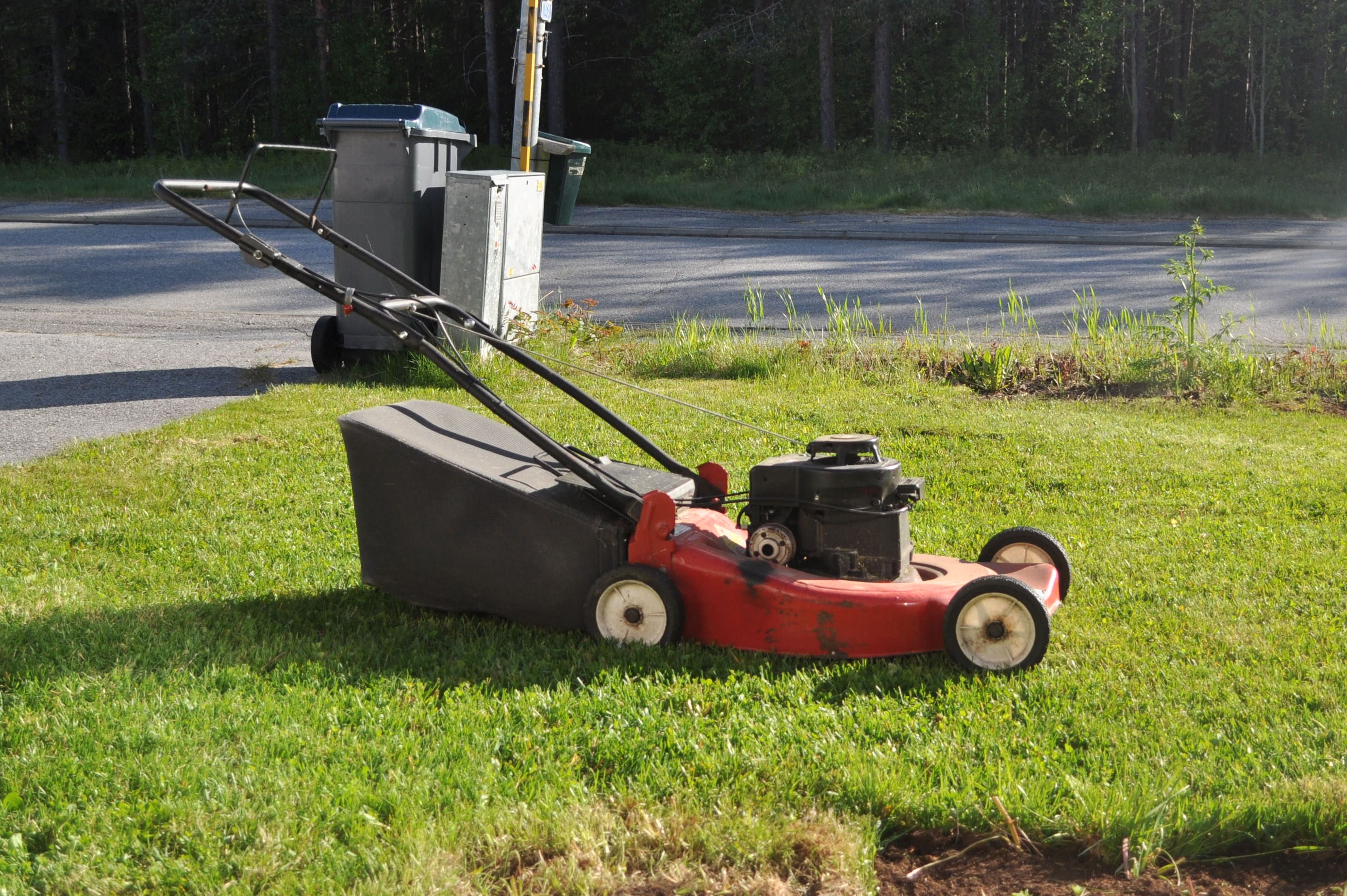 Min gräsklipprutin ser ut ungefär så här. 2 dagars går åt till att konstatera att man BORDE klippa gräset. En timme går åt till att gruva. 5 minuter går åt till att få gräsklipparen att fungera som den ska. Slutligen tar det väll endast 20 minuter att få det gjort och när det är klart ser det ut som en galning har varit framme. Det är klippt kors och tvärs. Sedan när man står med händerna i sidan och nöjt konstaterar att man är färdig så upptäcker man att man har missat en tuss MITT på gräsmattan.