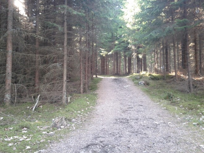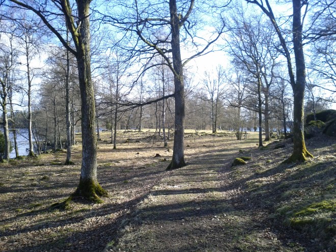 Gick en promenad i dag. Först får man snirkla sig genom ekarna och sen kommer man till vattnet. Täta skogen kommer sen och sist får man heja på fårskallarna 🙂