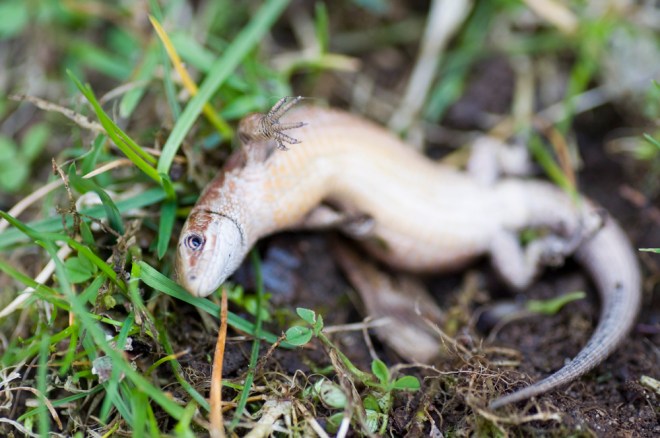 Ödla maj 1, 2012 A Den här fick jag rädda från katten i går. En timme efter att jag dumapt den i skogen så ser jag hur katten leker med nått som krälar fram på gräsmattan, Vila i frid lilla ödla. Dela detta: Dela på Facebook (Öppnas i ett nytt fönster) Facebook Gilla Laddar in … Relaterade Ödla