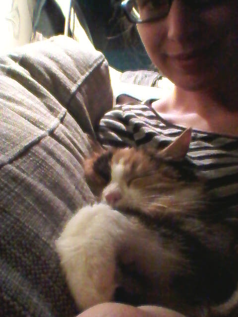 Katten luktar det. Hon luktar också som Ingas hus i Myckelgernsjö. Men hon är hemma och mår gott i alla fall. Lite kort i humöret men det tar sig nog.