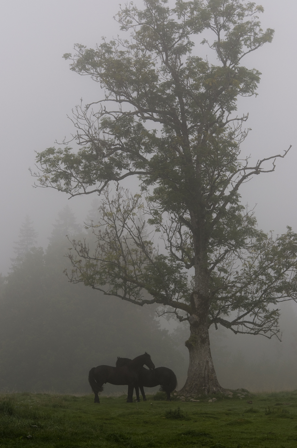 Hittade en bunt med bilder från i höstas. Ni vet dagar då dimman ligger som ett tjockt täcke runt allt, då man knappt ser 3 meter framför sig? Detta var en sådan dag.